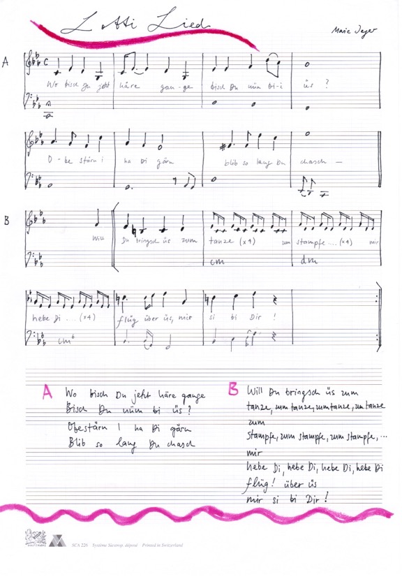 - 1. Geburtstag senza LottiMarie Jeger fiel ein Lied zu Lotti beim Wandern zu. Erstmals gesungen hat sie es am Geburtstagsfest für Lotti am 24.10.2021 auf dem Gut Schöntal.