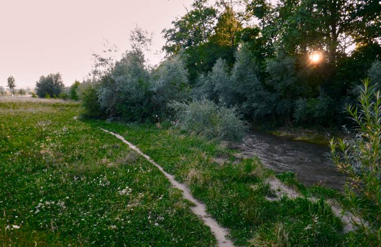 Die Wiese in der Nähe der Suhre wird zum Dörfchen auf Zeit mit grossem Zelt, Holzbackofen und Feuerstellen. Es hat genug Platz für private Zelte.