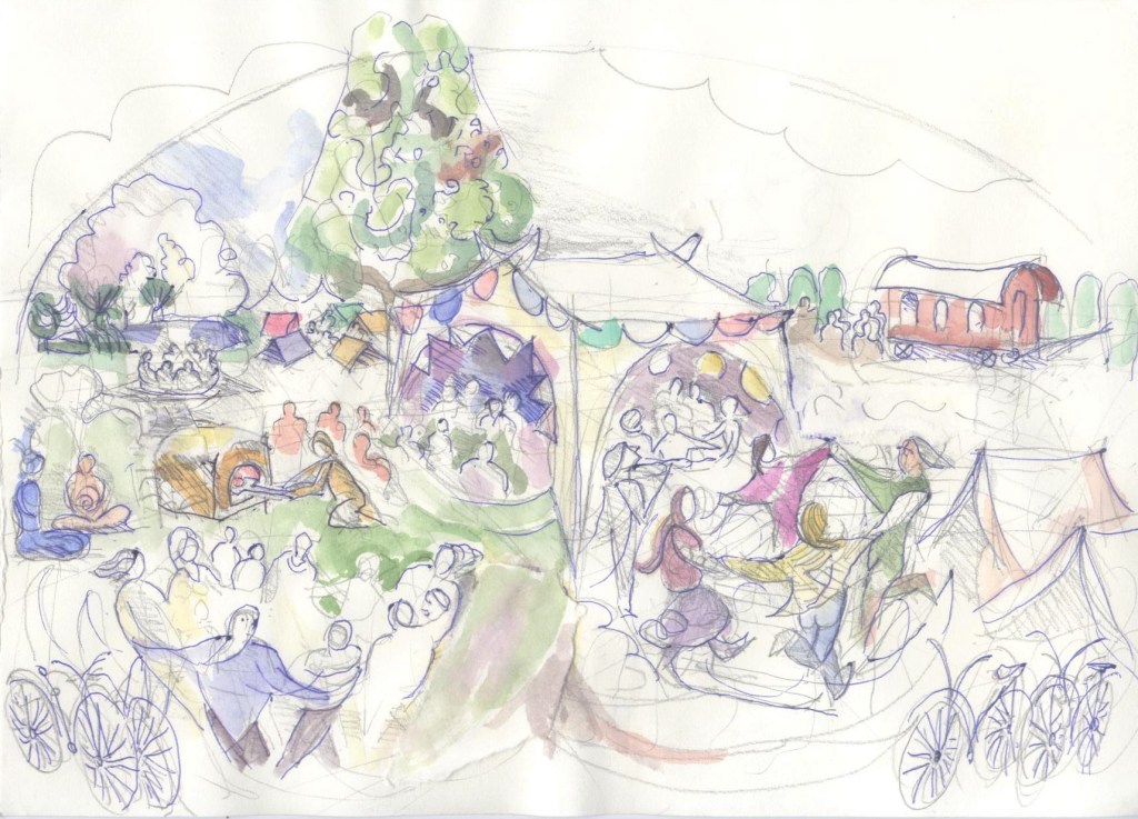 Ein Zirkuswagen mit einem professionellen Holzbackofen für Focaccia, Pizzen, Brot und mehr, betreut von Simon Bühler, hilft bei der Ernährung. Wir werden ein paar Feuerstellen haben.